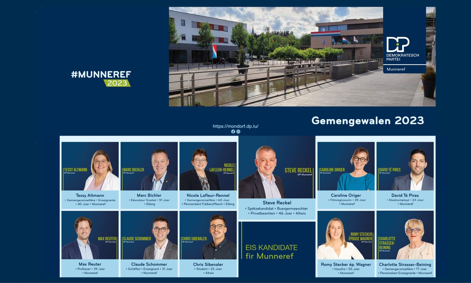 Gemengewalen 2023 – eis Kandidate fir Munneref