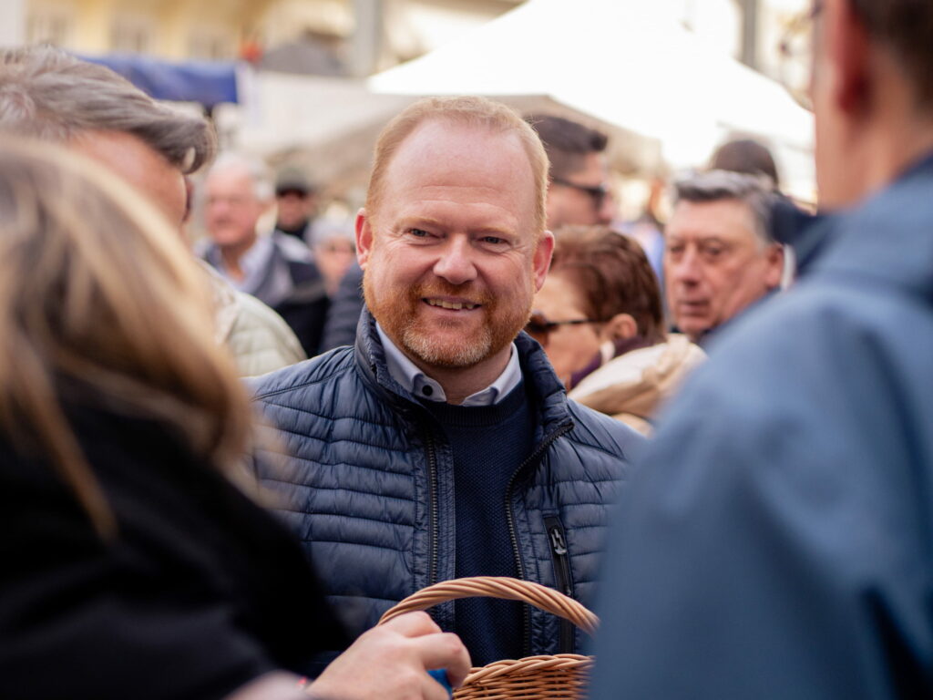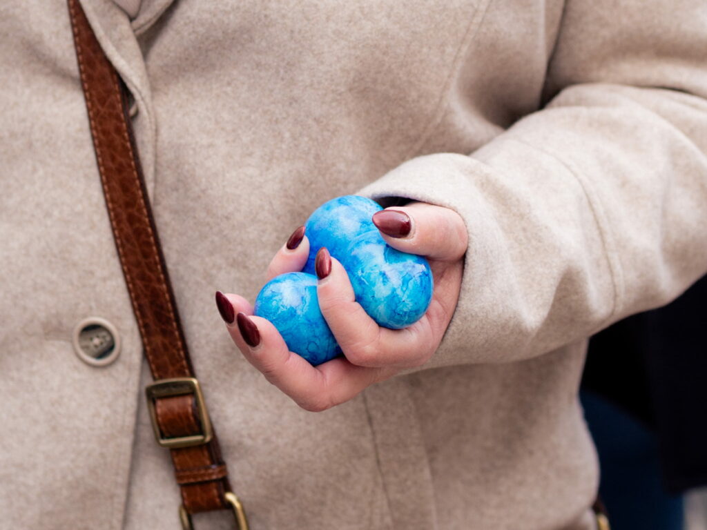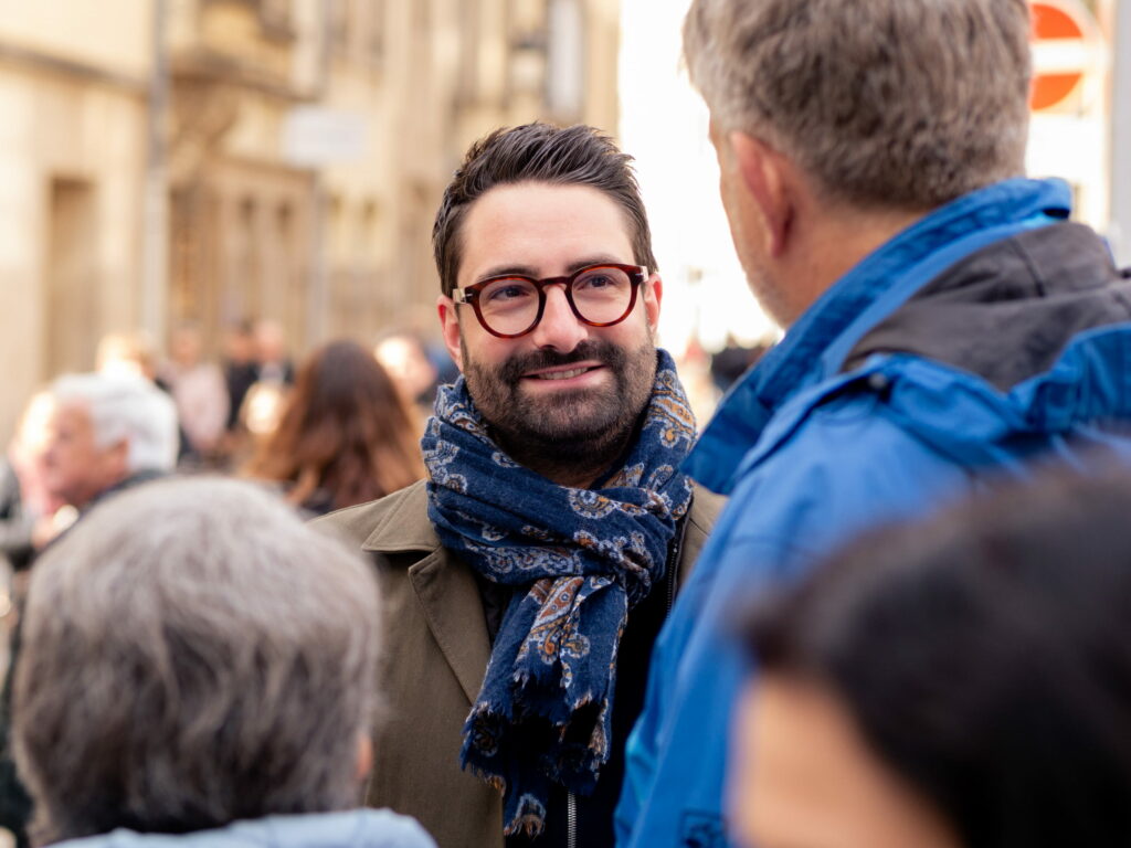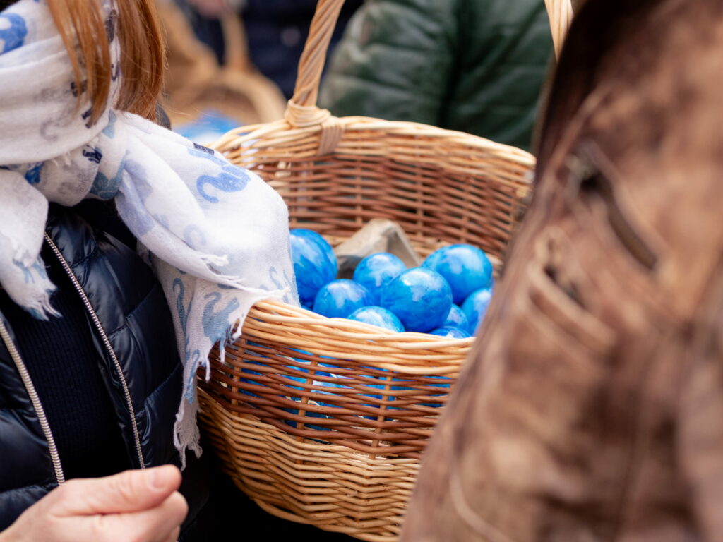 As every year, the DP was present at the Éimaischen in Luxembourg City on Easter Monday. From 10:00 a.m., numerous representatives from the government, parliamentary group and party were out and about in the narrow streets handing out the traditional blue eggs. They were supported by the Young Democrats and DP International.
